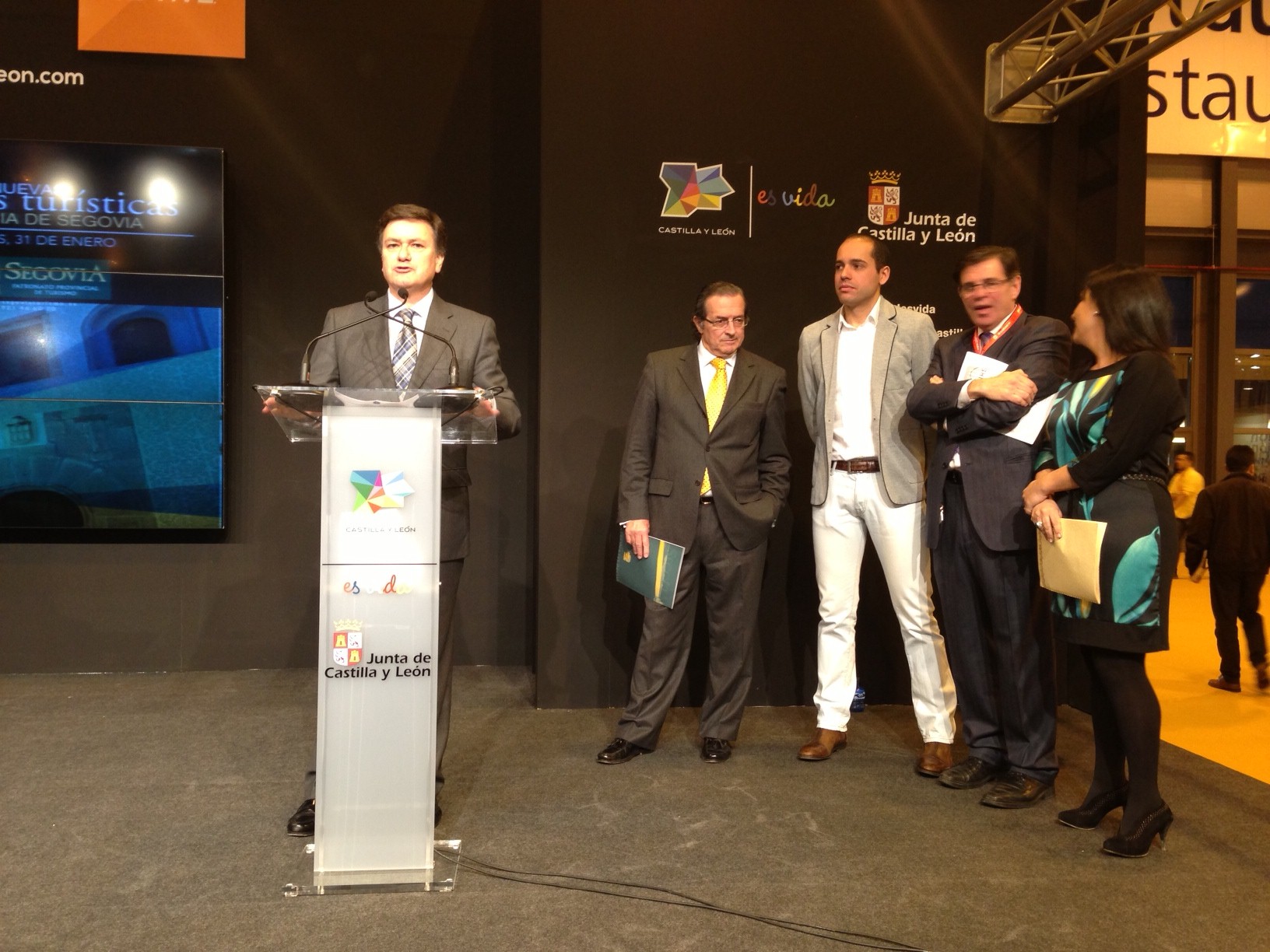 El Presidente de la Diputación Provincial de Segovia, Francisco Vázquez, acompañado por el Diputado de Cultura, Turismo, Juventud y Relaciones Institucionales, José Carlos Monsalve, ha presentado hoy en FITUR las nuevas líneas de trabajo del Patronato en materia de promoción turística de la provincia.