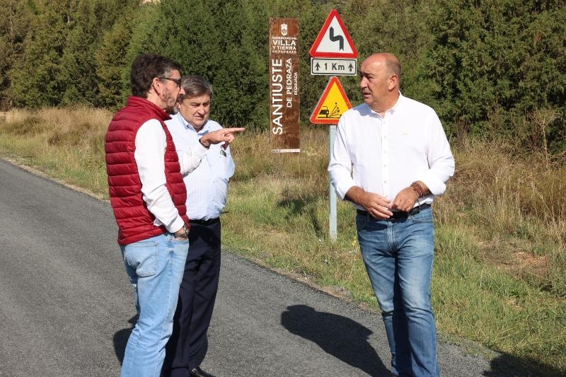 Por último, han visitado diferentes trabajos de mejora del firme mediante tratamiento superficial de riegos asfálticos que han llevado a cabo los equipos de Infraestructura y Obras de la institución provincial en los accesos a Valdesaz, Requijada, Galíndez y Valdesimonte, que han contado con una inversión de 127.000 euros para casi cinco kilómetros, que se suman a otros 120.000 euros del ensanchamiento de la calzada en Requijada y Galíndez, ya que era insuficiente para el cruce de dos vehículos. Con estas actuaciones se ha mejorado el pavimento ya deteriorado por el paso del tiempo y el tráfico para ofrecer mayor comodidad y seguridad en la conducción. En esta obra se incluye la colocación de señalización vertical de varias señales de peligro peatones, stop en la salida de caminos y fincas particulares. Por último, en estos cuatro accesos, se aplicará una capa de emulsión negra cuando finalice la obra de Valdesimonte en la primera semana de octubre y se realizará el pintado de la señalización horizontal de la que carecen actualmente y de los bordes en todos los tramos.