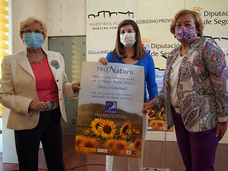 La Federación de Mujeres Rurales, FEMUR, organización pionera y referente en la defensa y promoción de las mujeres rurales, ha presentado esta mañana en el salón del Trono de la Diputación la XXIV edición de la Feria Internacional de la Mujer Rural PRONATURA, que este año, coincidiendo con el Año Santo Henarense, se celebrará presencialmente del 24 al 26 de septiembre en el Santuario de Henar, en Cuéllar.