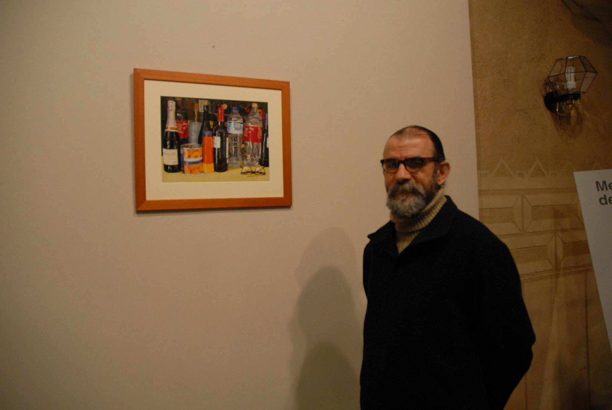Esta mañana presentó su trabajo, en compañía del diputado de Cultura, José Carlos Monsalve. Se trata de una pintura realista que toma como modelo una fotografía de varias botellas.