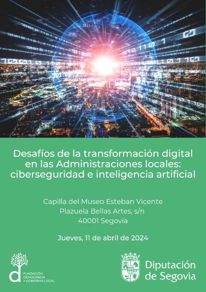 La Diputación de Segovia será la administración anfitriona de la jornada ´Desafíos de la transformación digital en las Administraciones locales: ciberseguridad e inteligencia artificial´ que, organizada junto a la Fundación Democracia y Gobierno Local, tendrá lugar el próximo 11 de abril y está destinada a alcaldes, concejales y técnicos municipales de los ayuntamientos de toda España.