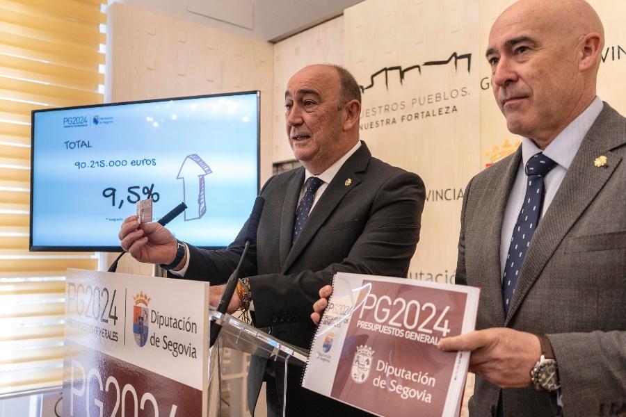 El presidente de la Diputación de Segovia, Miguel Ángel de Vicente ha presentado esta mañana el Presupuesto de la institución provincial para el año 2024, unas cuentas que volverán a ser de récord, ya que contemplan una cifra total de 90.215.000 euros. En palabras del presidente, se trata de un “Presupuesto transformador y expansivo que aporta más cohesión social, más vertebración territorial y más sostenibilidad, lo que supone una forma de progreso”. También, ha destacado, “es un presupuesto valiente y consecuente con nuestra manera de gestionar y nos permite caminar juntos desde la inversión con los ayuntamientos, poniendo de relieve una vez más su carácter social y precursor de empleo en nuestra provincia”.