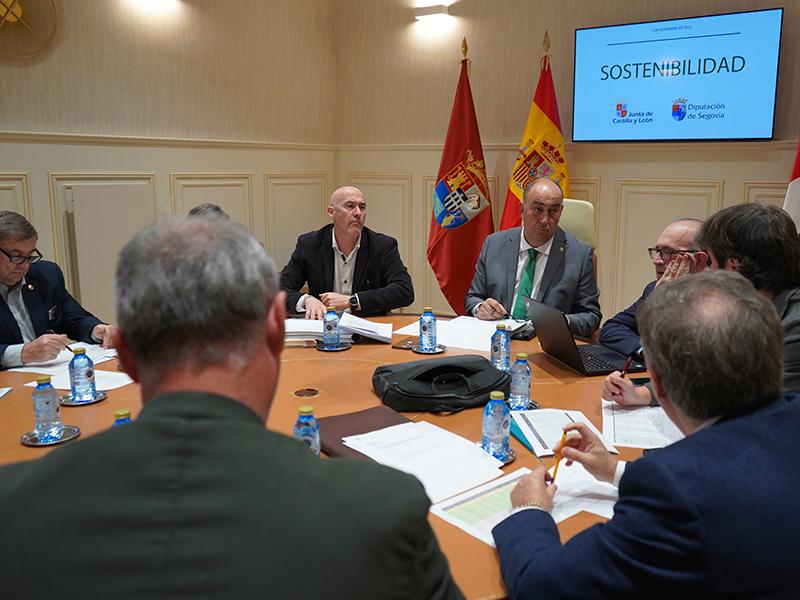 El presidente de la Diputación, Miguel Ángel de Vicente y el director general de Infraestructuras y Sostenibilidad Ambiental, José Manuel Jiménez se han reunido esta tarde con técnicos de la institución provincial y la Junta de Castilla y León, con la presencia del delegado territorial, José Mazarías, para continuar perfilando los detalles de un protocolo en materia de depuración de aguas residuales para municipios de menos de 500 habitantes, que supondrá una inversión aproximada de cinco millones de euros en una treintena de ayuntamientos de la provincia. Este acuerdo viene a abundar en una cuestión clave durante el mandato de Miguel Ángel de Vicente al frente de la Diputación de Segovia, no en vano fue una de sus referencias dentro de su discurso de investidura, y por ello se han ido creando sinergias con la administración regional, para seguir dando cumplimiento a este compromiso. En este sentido, el anterior protocolo firmado en octubre de 2020 con el presidente de la Junta, Alfonso Fernández Mañueco, con una inversión de más de 20 millones de euros en 35 ayuntamientos de más de 500 habitantes, ya tiene todos los proyectos en marcha, de manera que ya se están realizando o tienen los proyectos entregados las depuradoras de Escalona del Prado, Escobar de Polendos, Navalmanzano, Fuentesaúco de Fuentidueña, Maderuelo, La Matilla, Santo Tomé del Puerto y Torre Val de San Pedro.