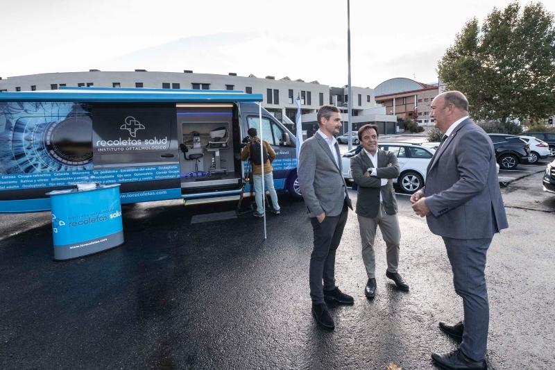 El gerente del hospital Recoletas Salud de Segovia, Ignacio Cabezón y el gerente del Instituto Oftalmológico Recoletas Salud e impulsor de esta iniciativa, Javier Moralejo, han presentado esta mañana la Unidad Móvil a una veintena de alcaldes y alcaldesas de la provincia en el transcurso de una reunión presidida por el presidente de la Diputación de Segovia, Miguel Ángel de Vicente.