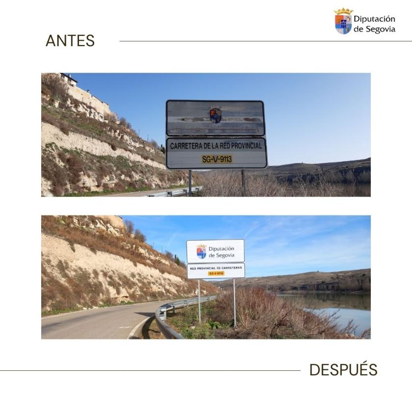 El Área de Acción Territorial ha iniciado la renovación de los carteles que indican la titularidad provincial de las carreteras de la red de la Diputación de Segovia. “Una labor necesaria, teniendo en cuenta que muchas de esas señales tenían ya más de veinte años y que muchas de ellas se encontraban bastante deterioradas”, debido a las inclemencias meteorológicas -como el viento, la lluvia, la nieve o el hielo-, la incidencia de la luz solar, el paso del tiempo o algunos golpes recibidos, como ha indicado el diputado de Red Viaria, Benjamín Cerezo.