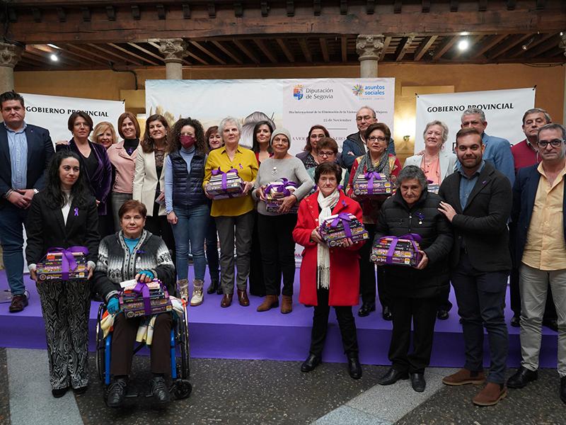 Como broche final, y dentro de las múltiples actividades propuestas y puestas en marcha por la Diputación durante los últimos meses para conmemorar este 25 de noviembre, tenía lugar en el patio de Columnas la entrega del premio y los diplomas del Concurso de Relatos Cortos Contra la Violencia de Género, cuyo ganador ha sido el grupo de Aulas Sociales de Trescasas. Encabezado por la educadora Laura Sanz y formado por Piedad Martín, Milagros Martín, Felipa Sanz, Asunción de la Peña, Cecilia García, Josefina de Frutos, Catalina Martín y Victoria Francisco, el grupo ha sido merecedor del premio, consistente en un lote de libros y juegos de mesa para cada integrante, por su relato ‘TD20’, destacado entre los 62 recibidos por el jurado por “su originalidad y por la perspectiva desde la que aborda la problemática de la violencia de género”; algo que podían comprobar los presentes en el Palacio Provincial durante la lectura del relato a cargo de Asunción de la Peña. Además, como elemento promocional de la campaña, a la salida se hacía entrega a todos los presentes en el patio de Columnas de un cuento en blanco para que sus receptores puedan escribir, a partir de hoy, su propia historia libre de violencia.