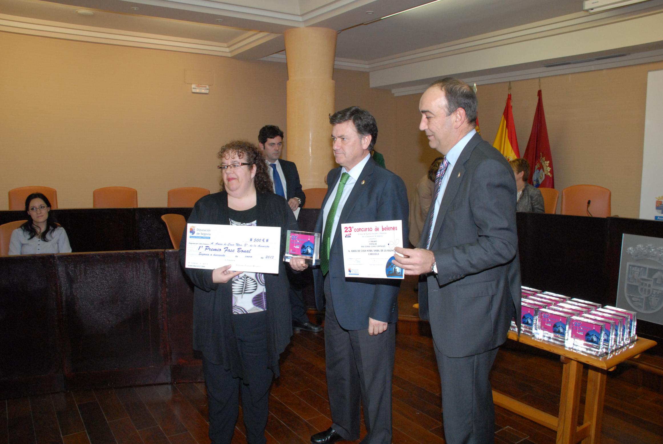 El Presidente de la Diputación Provincial de Segovia, Francisco Vázquez, acompañado por el Vicepresidente y Diputado del Área de Asuntos Sociales y Deportes, Miguel Ángel de Vicente, ha hecho entrega en la mañana de hoy de los premios del Concurso Provincial de Belenes del año 2012, en el Salón del Trono del Palacio Provincial.