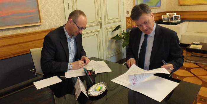 Francisco Vázquez, presidente de la Diputación Provincial, y Víctor Manuel González, director del Centro Asociado de Segovia de la UNED, han firmado este acuerdo, que llevará a los investigadores del centro universitario a hacer acopio de monografías, publicaciones, artículos, ponencias de congresos o tesis, entre otros documentos.