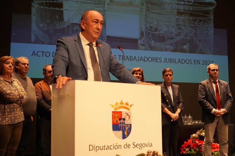 Miguel Ángel de Vicente, además, les dedicaba “un mensaje de sincero agradecimiento por copilotar, durante años, y con vuestro trabajo en las diferentes Áreas y dependencias de la institución, el despegue de la provincia de Segovia hacia un territorio seguro, cooperativo, solidario, social, culto, emprendedor, moderno y, al mismo tiempo, conservador de sus raíces y de todo aquello que enorgullece a sus pueblos”. Con lágrimas en los ojos de alguno de los presentes, quienes en buena medida eran acompañados por sus familiares en este punto de inflexión en sus carreras laborales, los trabajadores jubilados recogían de manos del presidente de la Diputación y parte de la corporación provincial una pieza de la Real Fábrica de Cristales de La Granja, preparada para enfrascar el tiempo pasado y dispuesta para servir el futuro, como señalaba el presidente de la Diputación, “disfrutando del nuevo trayecto que comienza a partir de ahora”.